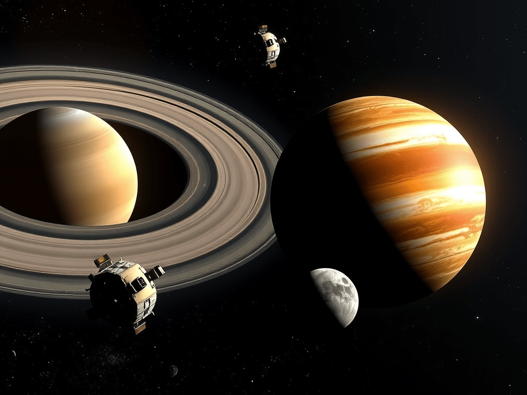 - Details: Cassini-Huygens was a collaborative mission between NASA, ESA (European Space Agency), and the Italian Space Agency, launched in 1997. It orbited Saturn from 2004 to 2017, studying the planet, its rings, and moons (notably Titan). The mission provided detailed insights into Saturn’s ring system and atmospheric composition.