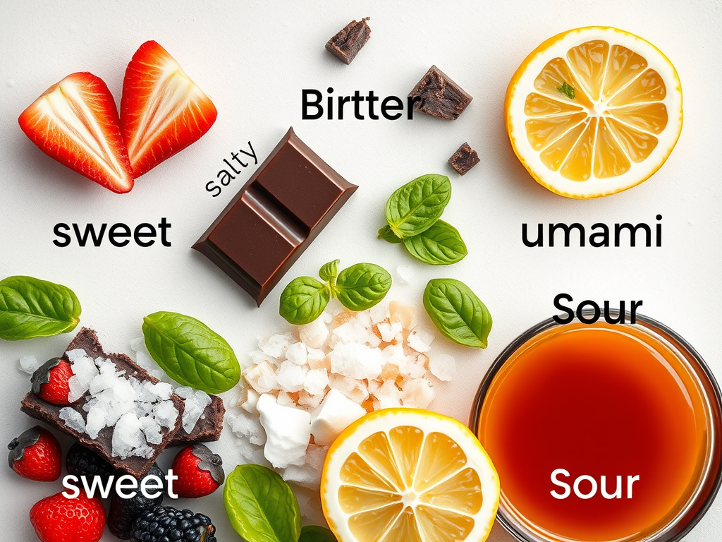 - Sweet: Basic taste triggered by sugars, signals energy-rich foods.