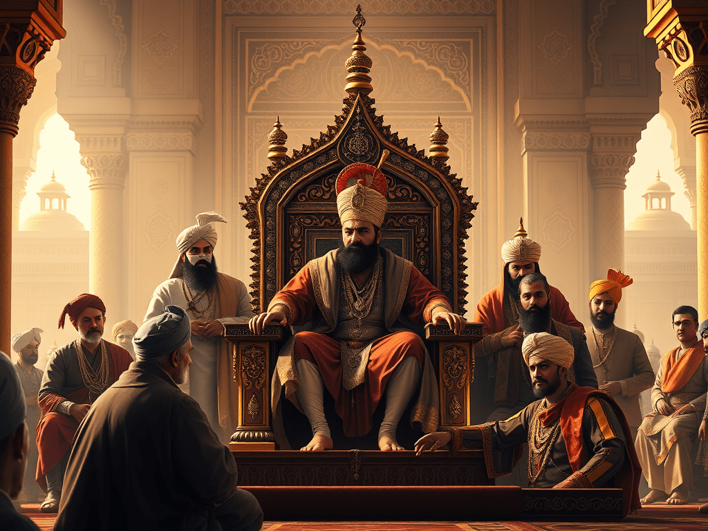 • Supreme authority, considered Zill-i-Ilahi (Shadow of God), blending Persian divine kingship with Islamic caliphal legitimacy.