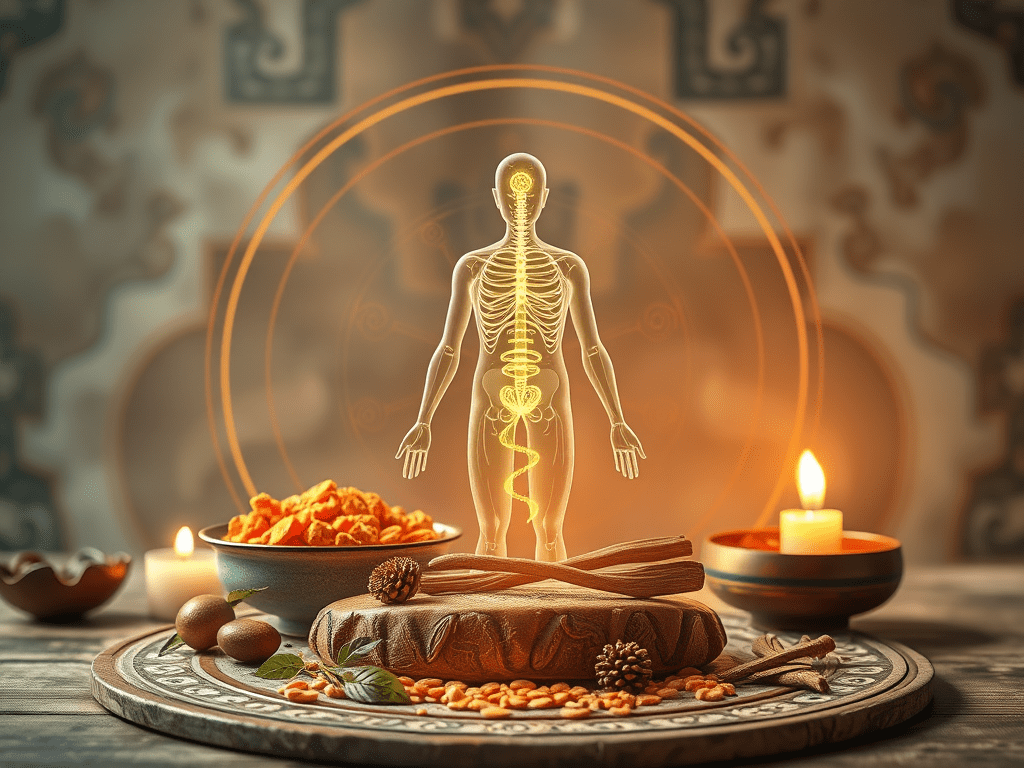 आयुर्वेद में, मानव शरीर मूल रूप से तीन मुख्य तत्वों से बना होता है: दोष (जैव-ऊर्जा), धातु (शरीर ऊतक), और मल (अपशिष्ट उत्पाद)। इन्हें सामूहिक रूप से “त्रिविध उपस्तंभ” या जीवन के स्तंभ कहा जाता है, जैसा कि चारक संहिता और सुश्रुत संहिता जैसे शास्त्रीय ग्रंथों में वर्णित है। सिद्धांत “दोष धातु मल मूलं हि शारीरम” बताता है कि शरीर इन घटकों पर आधारित है। स्वास्थ्य (स्वास्थ्य) को दोषों के संतुलन (सम्य), धातुओं के उचित निर्माण और कार्य, और मलों की कुशल निकासी के साथ-साथ संतुलित मन और इंद्रियों के रूप में परिभाषित किया गया है।