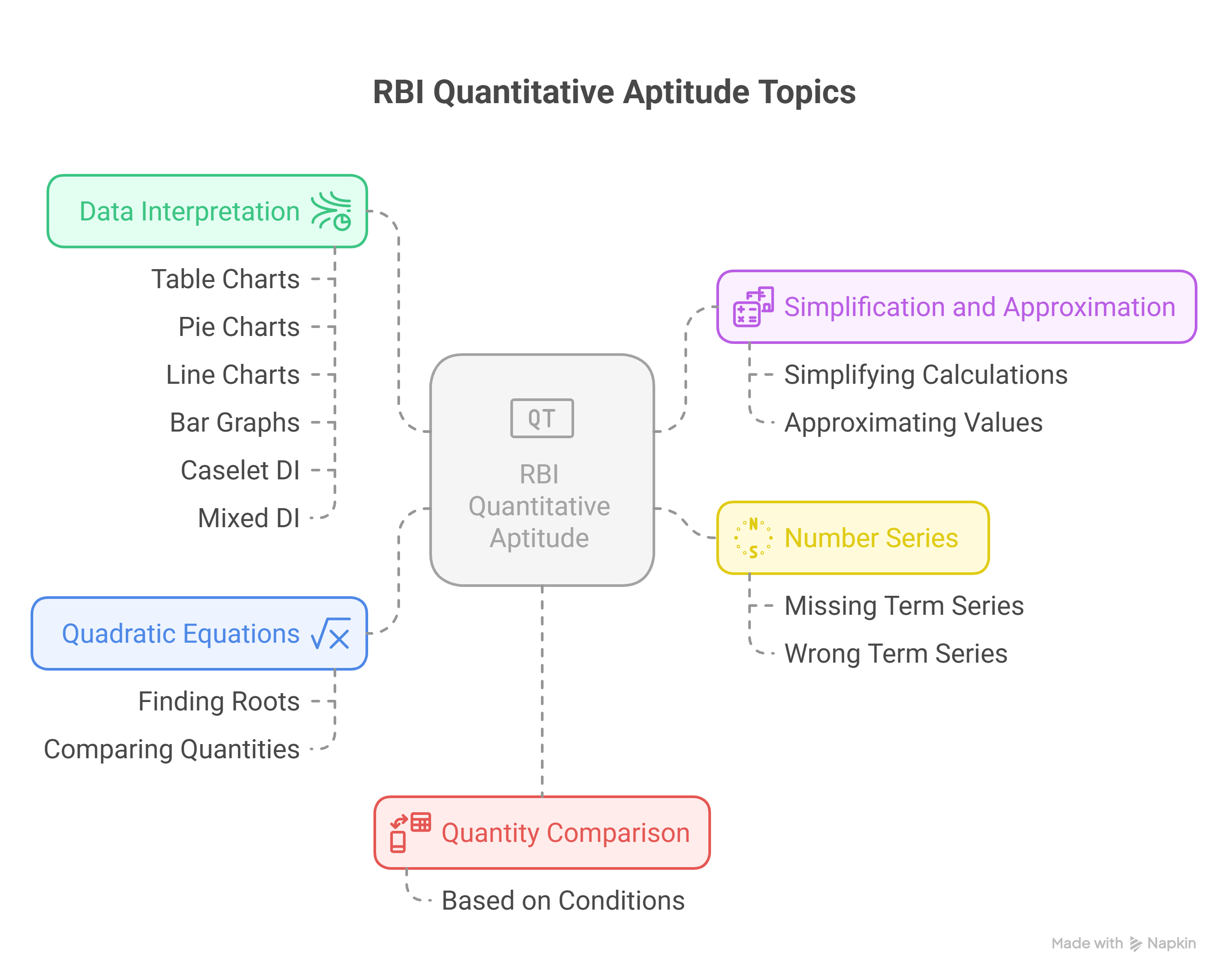 The Quantitative Aptitude section is a crucial part of the RBI Grade B Phase 1 exam, carrying 30 marks with 30 questions to be solved in 25 minutes. There is a negative marking of 0.25 marks for each incorrect answer, and candidates must clear both sectional and overall cut-offs to qualify for Phase 2.