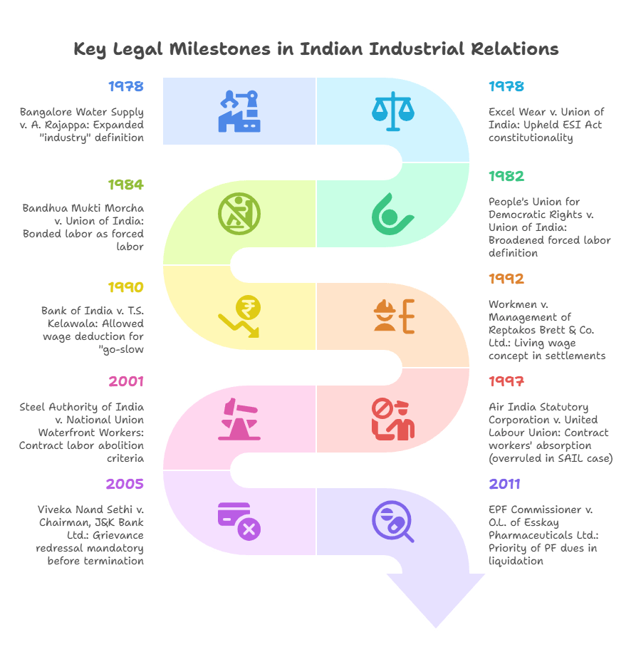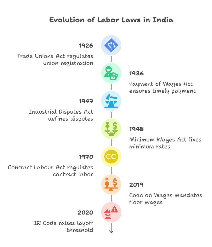 The evolution of these relations in India traces back to colonial-era laws influenced by the Royal Commission on Labour (1931) and ILO conventions, transitioning post-independence to a welfare-oriented framework under the Directive Principles of State Policy.
