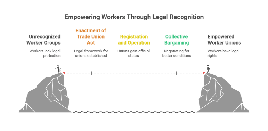 • Registered trade unions gain corporate status, enabling them to sue, be sued, and hold property in their name.