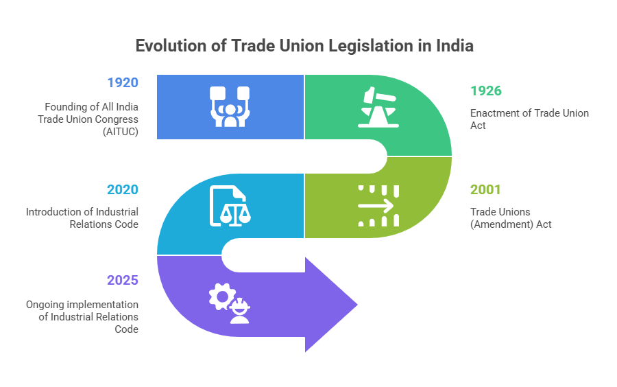 • As of 2025, the full implementation of the Industrial Relations Code is ongoing, with states framing rules, but the Trade Union Act, 1926, remains partially in force for aspects not covered by the new code.