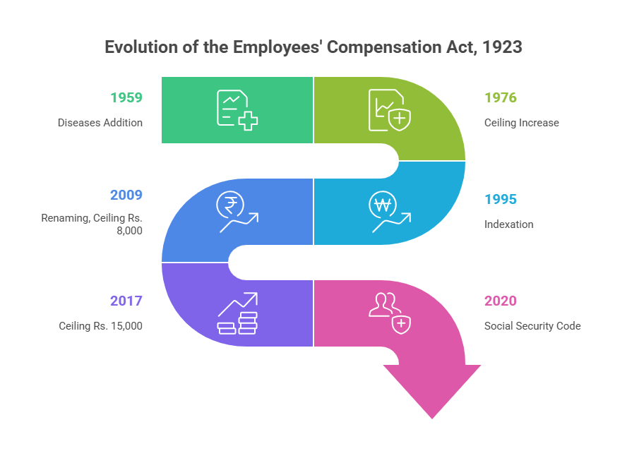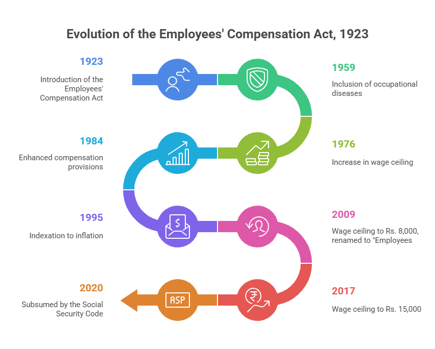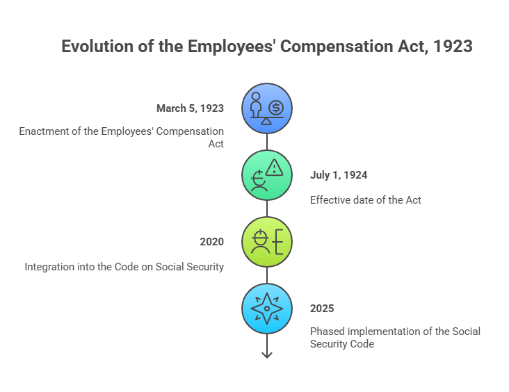 The Employees’ Compensation Act, 1923, emerged during British colonial rule to address rising industrial accidents in sectors like mining, railways, and textiles, where workers faced hazardous conditions without adequate protection.