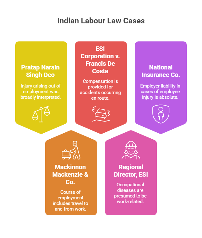 - Pratap Narain Singh Deo v. Srinivas Sabata (1976): Injury “arising out of employment” broadly interpreted.