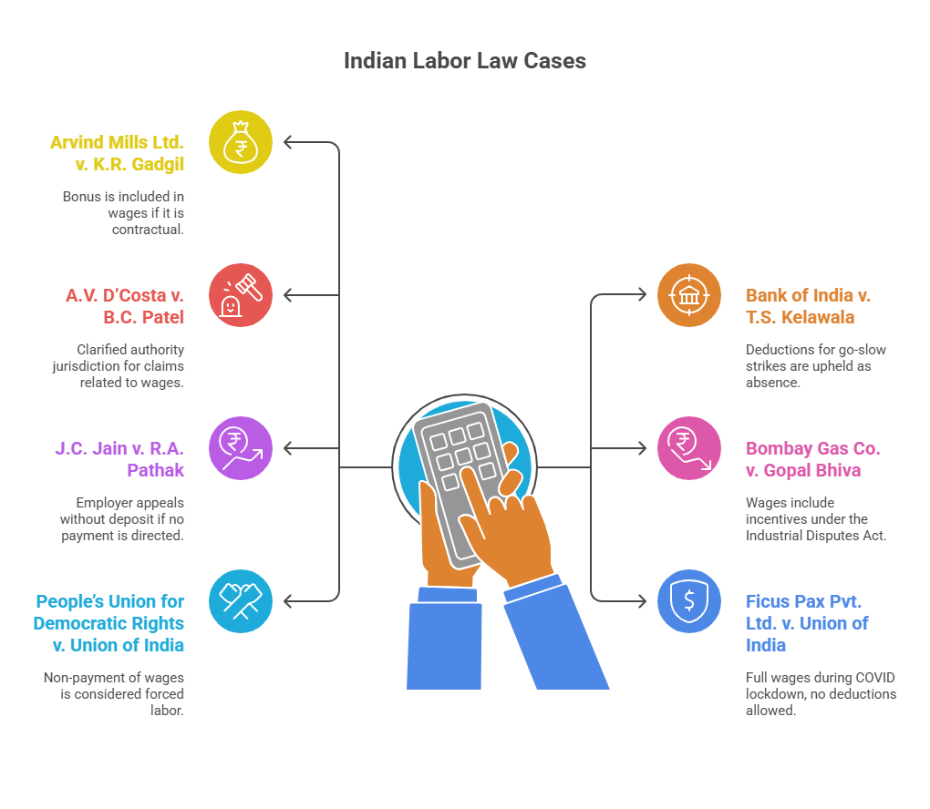 - Arvind Mills Ltd. v. K.R. Gadgil (1941): Bonus included in wages if contractual.