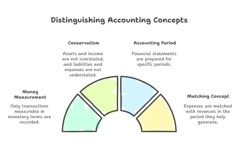 To avoid confusion, it’s important to distinguish the fundamental accounting assumptions from other accounting principles or concepts often tested in exams:
