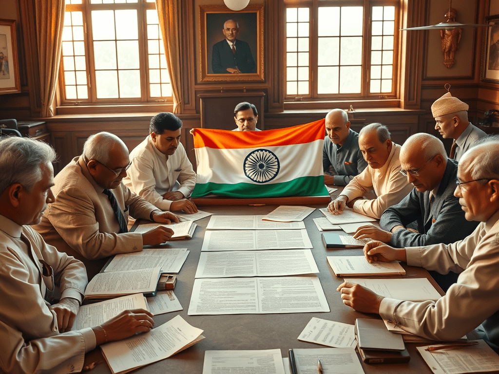 The drafting process was undertaken by the Constituent Assembly, established on December 6, 1946, initially comprising 389 members elected by provincial assemblies, later reduced to 299 following the partition of India. The Assembly convened for eleven sessions over 165 days, spanning nearly three years. Key figures included Dr. B. R. Ambedkar, who chaired the Drafting Committee; Jawaharlal Nehru; Rajendra Prasad, the Assembly’s President; and constitutional advisor B. N. Rau. The Drafting Committee, appointed on August 29, 1947, presented a revised draft on November 4, 1947. The Assembly debated and resolved 2,473 out of 7,635 proposed amendments. The Constitution was adopted on November 26, 1949, and came into effect on January 26, 1950, replacing the Government of India Act, 1935. This process incurred a cost of approximately ₹6.4 million and took 2 years, 11 months, and 18 days.