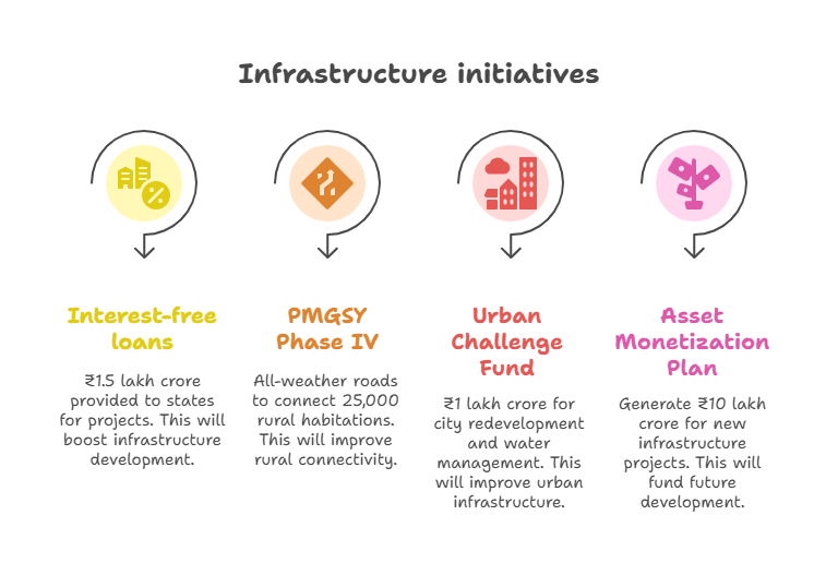 - ₹1.5 lakh crore in interest-free loans to states for capital projects.