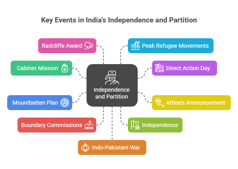 | June 3, 1947 | Mountbatten Plan | Outlines partition and independence timeline. | Formalized division of India and Pakistan. |