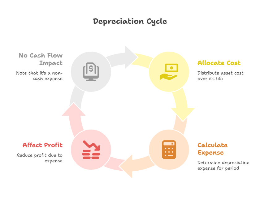 - Systematic allocation of cost of a tangible asset over its useful life.