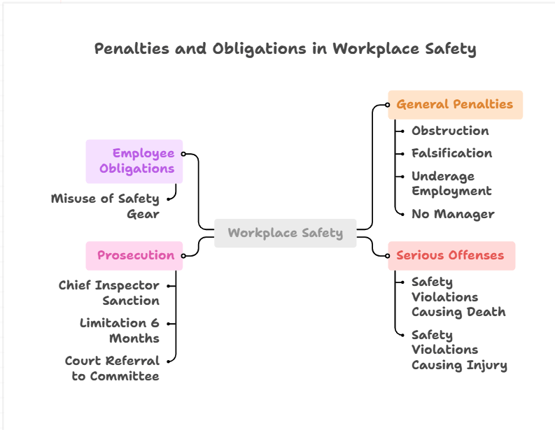 - Employee Obligations: Misuse of safety gear: Fine ≤₹500